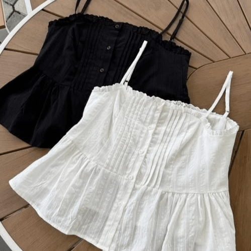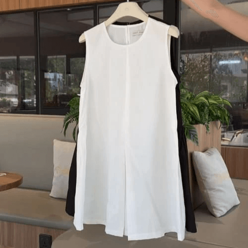 Simple sleeveless cut flatters the shoulders and neck, offering a refreshing and elegant look.