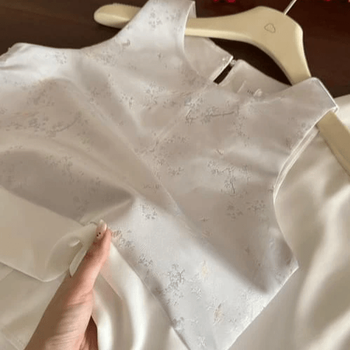 Soft jacquard chiffon patchwork, delicate texture, subtly revealing for a refined look.